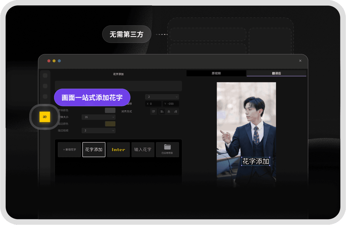 可直接在视频中添加人名介绍、剧情概要等花字效果,样式灵活可控,无需再借助第三方剪辑软件