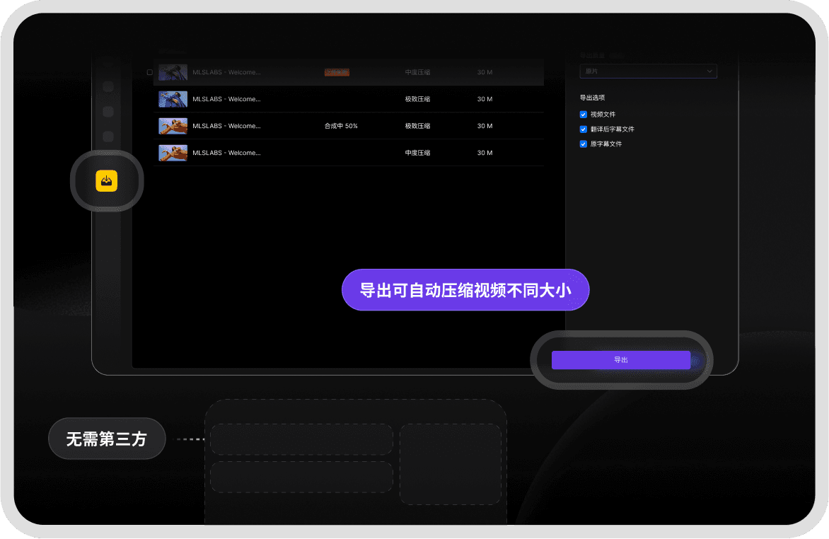 导出时可将视频压缩至不同大小,无需额外使用第三方编解码工具,加速整体投放周期